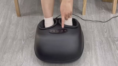 Feature highlights:Experience advanced 360° airbag massage with customizable intensity and heat therapy. Made from medical-grade silicone and ABS plastic, this shiatsu foot massager ensures safety and comfort